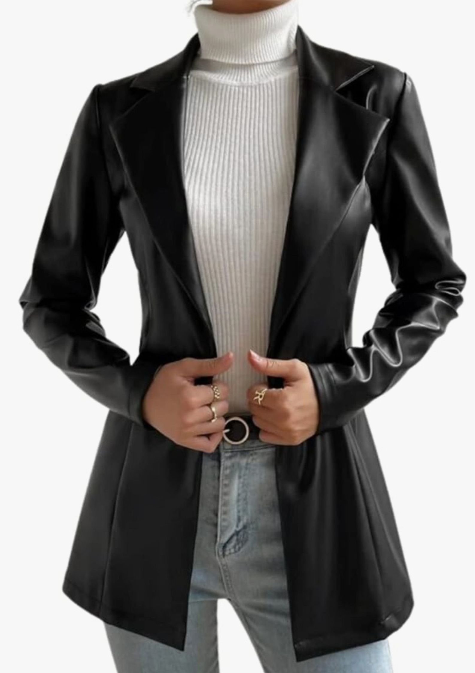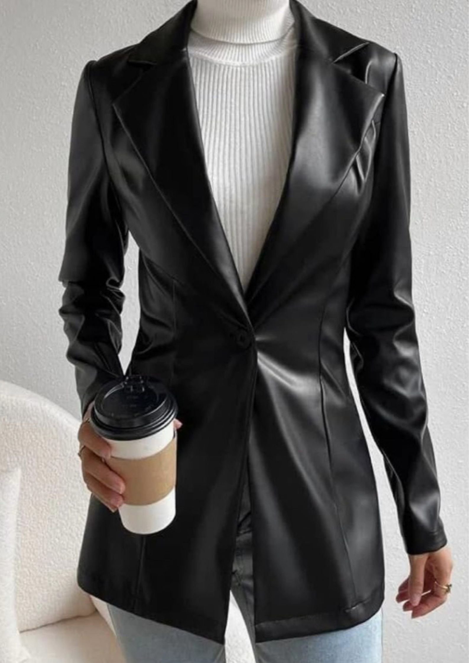 The rich black color makes this coat a versatile wardrobe essential that pairs effortlessly with both formal and casual outfits. Whether layered over dresses or trousers, it adds a sharp, refined edge to your ensemble.